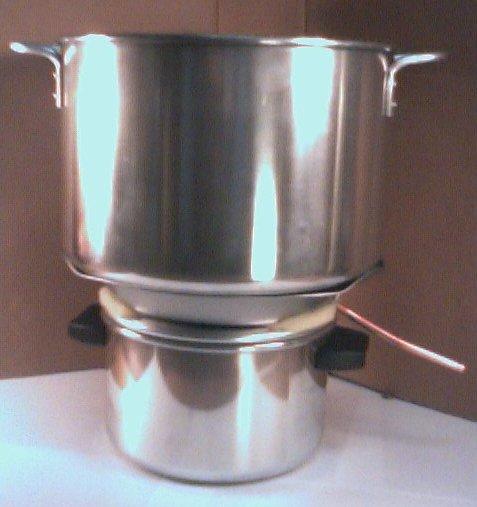of heat supplied to the bottom boiler pot. The water in the top cooling pot