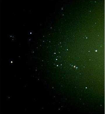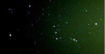 The Great Hunter, Orion, has risen to a height in the mid-summer sky to which he does not normally climb and taken a recumbence that belies his prowess as a hunter. In the following photos they are representations of this authors own observations taken from existing photos and manipulated to reflect those observations the reader shall see, that not only has the moon rotated out of place in the mind's eye of those who observe from this planet, but so has the plane of the solar ecliptic and the zodiac. There can be only a single explanation for these shifts in the perceived positions of these celestial objects. The axis of the earth is in a severe and potentially wrenching state of wobble and there can be no known power on this planet that can either have caused it, or can hope to stop it before it reaches the end towards which it is intended. ...In the early morning hours of August 20th, 2004 at 04:00, while driving along the central Louisiana Gulf Coastline I saw the constellation Orion in the Southeastern sky about 20 - 30 degrees above the horizon at azimuth from 90 - 140 degrees. Not only was it a little out of the ordinary to see Orion so high in the sky during a midsummer morning, which usually finds Orion well down in declination at this time of year, but strangely Orion did not appear to be the bold and certain hunter to which we are accustomed in the [photo at right]. I have included the trees at the bottom of this photo so that the reader can see the general orientation that Orion takes in the night sky, in this particular photo sometime in December.