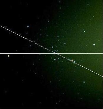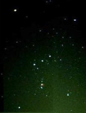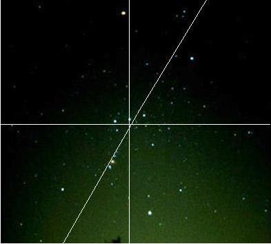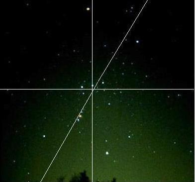 ... On all of these photos that have been sectored I drew a line from side to side just below Orion's Belt and side to side at right angles to Orion's belt directly through the center star in the belt, and then a straight line through the stars of Orion's sword that passed through the right angle jucnture of the other two lines. The reader's attention is drawn to the difference in angles of this last line through the first two comparisons, with the normal, 21 degree narrowing of the original angle from 45 degrees to about 20 - 24 degrees. Now see how the difference between this 21 degree rotation and the apparently almost 90 degree ratotation of the third set. ... Orion Normal Upright with Sectoring