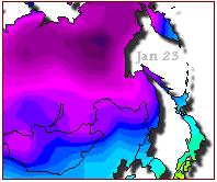 Weather maps from WeatherUnderground show the polar wobble setting in. Note the cold spots are centered over the Magnetic N. Pole, not the Geographic N. Pole. Europe far too warm as their tilt places the Sun North there. N. America with a cold spot too far South of the Arctic [Jan 5] while Alaska melts [Jan 5]. The cold spot over Manchuria persisting, while Siberia just to the West and over India is warm by comparison and Europe roasts. By the end of January, the weather wobbles had become obvious! Compare to December, for trends.