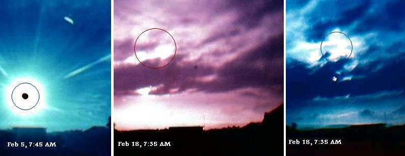 - Feb 5 Sequence: timings between 07:45 and 08:30 this morning. Next taken at 07:35 local time on Feb 18, with no filters. Note location of Sun rising!