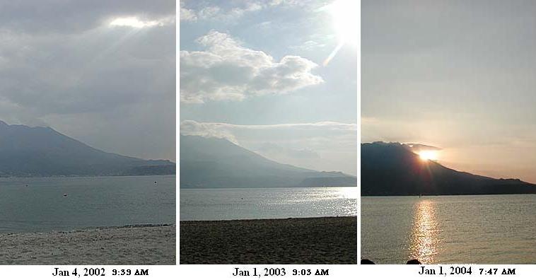 Tilting, Jan 1, 2004 Iceland as N Pole, Sun low in Japan