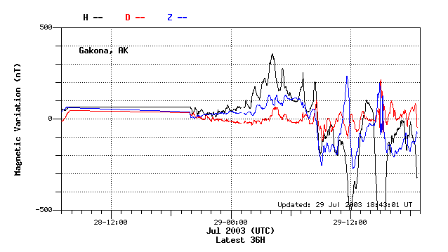 - With all the serious shaking going on, now HAARP has not shown the the three data points since before the morning of the 28th! And IRIS Seismo Map has not shown anything alledgely for at least 24 hours for the big red circles. All we have now is the European Seismo list which is already staggering this morning on July 29. A 7.0 in and near the very scarey Canary Islands, a high 6 in Portugal. ... Seems to be the pattern. Earth´s magnetic field goes bonkers, Earth starts quaking, sites go down or info dissapears. ... I suspect some funny business went on with the Euro site as well on the 28th. Activity dropped off too fast once again. This only serves to confirm some kind of a cover up. What are they hiding? ... HAARP magnatometer going off the chart now.