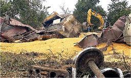 crews and equipment were remained on the clean-up site. The cause of the derailment remains officially under investigation.