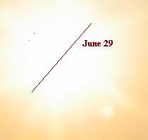 On July 4 2003 a target="_top">Crop Circle appeared in a barley field near Horicon Marsh, WI. The exact triangle described by the Zetas for Planet X entry into the Ecliptic is present, showing this crop circle was intended to relate to ZetaTalk. The relative size of Planet X, as seen by the human eye, is shown with the rightmost circle shows size prior to July 4, the center by mid-July, and the leftmost circle the size to be anticipated. Planet X placement on the Ecliptic, where supplanting of the Sun's magnetic influence over Earth will cause rotation stoppage and the shift, is shown by the lines, where the rightmost circle shows no blockage, the center partial blockage, and the leftmost total blockage. Dates could potentially be inferred from this crop circle. The USAF Visited this site after this relationship was posted on the web. A second July 4 ZetaTalk Triangle circle also was belately discovered.