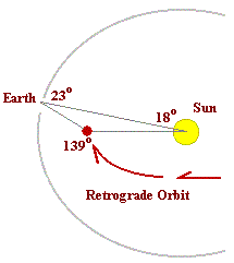 - Thus [Planet X] will come into the Earth's orbital plane not directly between the Earth and the Sun, but forward, somewhat closer to [Planet Xs] approach. When one is looking toward Orion, at this time, from above the Earth's orbital plane, the Earth, Sun, and [Planet X] will thus form a triangle in the Earth's orbital plane with a 23 degree angle at the Earth, an 18 degree angle at the Sun, and a 139 degree angle at [Planet X]. It is at this point, essentially, that [Planet X] is closest to the Earth.