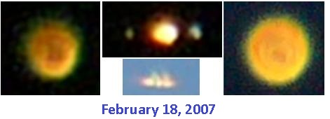 UFO above Moscow [Feb 18] http://www.warhorn.ru/htdocs/Extra/UFOaboveMoscowEng.htm At about 18:00 I glanced through my window and saw a bright unmoving spot of light (object) in the sky above Maryino district. The object stood in one place for some time, than disappeared and reappeared in other place, not far from the original. Soon, another object appeared not far from the first one, and approached it. Two objects merged and disappeared. Soon after, three objects appeared one by one. They repeatedly appear, hang in place, move, merge, spread apart and disappear. All that actions happened slowly, on a relatively small area, about 10-15 degrees above the horizon. At about 19:00 two objects approached each other, merged, than continued their movement in opposite directions. The third similar object appeared beside them. Three objects formed a triangle. Slowly, triangle started to spin. Original photos taken in 2304?1728 resolution, video clips recorded in 320?200, 30 fps.