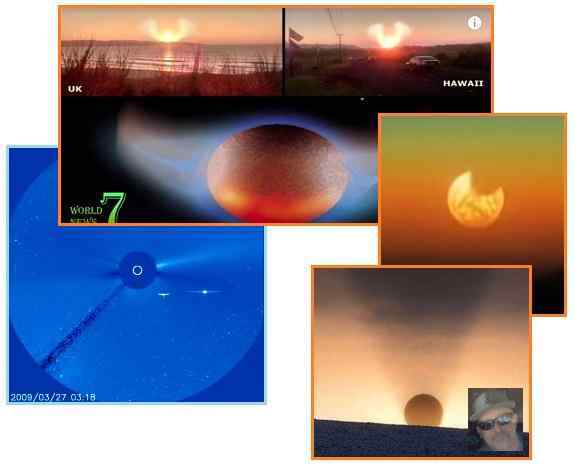 Por qué podría el Sol tener una sombra en la parte superior, pero no en el fondo de cualquiera de sus lados? La actual posición de Nibiru y las Lunas Danzantes en la flameante cola de Nibiru, al ser vistos desde el Hemisferio Norte de la Tierra, tiene a Nibiru y a sus cohortes en la parte inferior derecha, y a la cola flameando hacia la izquierda y luego hacia la parte superior izquierda. Normalmente, no hay nada allí arriba, en la parte alta. No es tanto que haya allí una sombra en la parte de arriba del Sol, puesto que hay más luz extra en los costados y en el fondo !!! Muchos han notado, desde que Nibiru ingresó al sistema solar interior en 2003, que la luz solar ahora causa quemaduras solares con mayor facilidad, y que el Sol pareciera estar tan extremadamente brillante. Es la luz reflejada, que rebota a través de la vasta cola de Nibiru