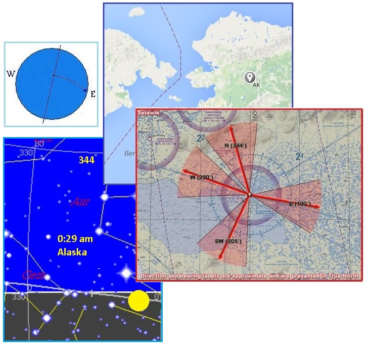to 344° degrees. When the Sun comes up at midnight Alaska time