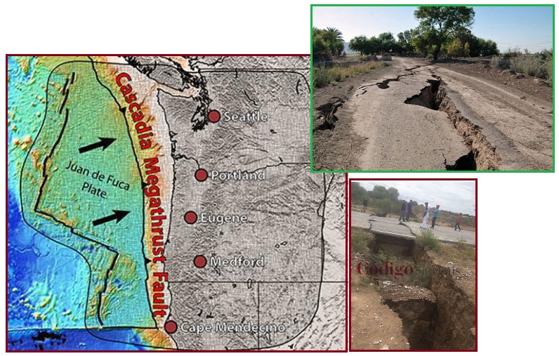 at the Cascadia Fault, land is deforming.