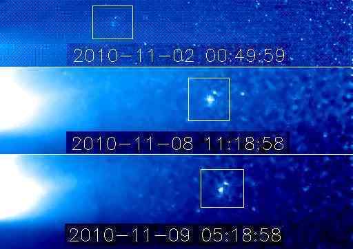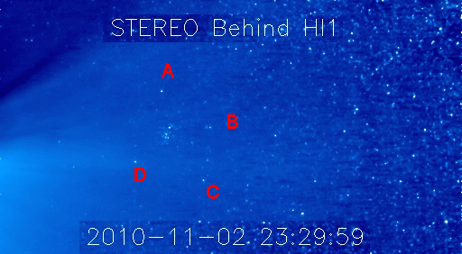 The particular Stereo Behind H1 image you referred to, for November 2, 2010, is not showing the Planet X complex but is showing an inserted constellation and star background generated for the Stereo Behind camera. Planet X has been showing up on the Stereo Behind, to the right of the Sun, but there are several reasons for it to be present one day, then not the next, and then reappear. We have explained that NASA is not interested in viewing the Sun, nor any comets or stars or constellations with their stereo cameras. They are interested in triangulating the Planet X complex between the two stereo satellites and any other satellites pulling in data from the direction of the Planet X complex. Why would Planet X appear one day, as it did on November 8, 2010, but not just days before on November 2, 2010? Just as the Second Sun is only visible on occasion, on Earth, when sunlight glints off the massive dust cloud shrouding Planet X at just the right angle, the appearance on the Stereo Behind cameras is dependent upon just the right angle for a sunlight glint. What is seen at present may not last. But this does not mean that the Planet X complex has moved out of view!