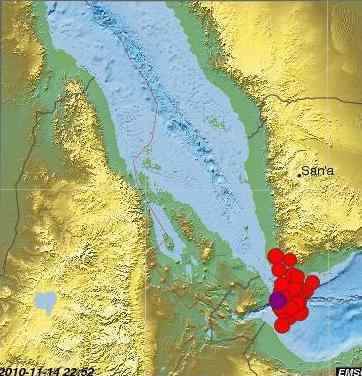 2010.11.14 around Yemen has occurred 49 (!!!) earthquakes for 24 hours. It specifies in the beginning a tearing of the south Atlantic Rift allowing Africa to roll and the floor of the Mediterranean to drop. Zetas have told that the first will occur a tipping Indo-Australia Plate with Indonesia sinking and as have told that it happens til the end of 2010 and error possibility is excluded. Truly? Zetas spoke that before movement of platforms stronger and frequent earthquakes will be observed. Why in Indonesia doesn't occur similar (as in Yemen)? Till the end of 2010 remains a little more than month. And signs in Indonesia possibly already should be shown. Or has probably begun 7 of 10 will be sudden, without what or signs?