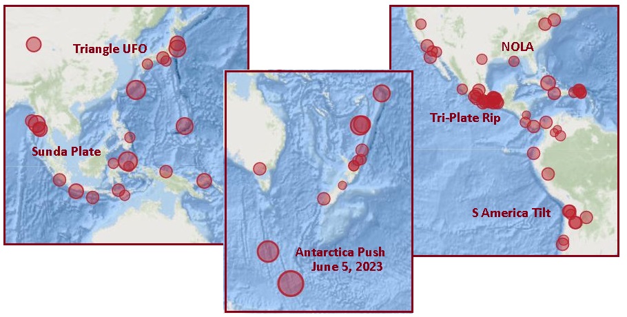 For the past week Nancy has noted serious shifting of the Eurasian Plate toward the East, with the Russian Rip path and Western China and even France experiencing quakes. The Sunda Plate at the same time shifted its quake pattern from one where quakes circled the Sunda Plate to a pattern where quakes only outlined the Eastern border. But on June 16 the pattern was coast to coast Eurasian stretch quakes with the Sunda Plate clearly being a point of resistance to a China lunge East. The UFO warning region - for those in the Triangle of Japan, Taiwan, and Beijing - was being hammered. The China quake we had been predicting was clearly imminent.
