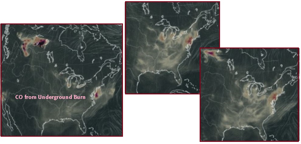 Did “8,500 gallons of 87-octane fuel” melt an overpass when a tanker ruptured on a sharp I-95 turn? This was an experienced driver on a road traveled daily by thousands. This point is where several fault lines merge, so shifting ground destabilized the truck, causing it to sway and tip over. Note that this region often shows red hot on the Methane emissions charts, and on the CO charts indicating underground fires. It did not take much to ignite the fuel in the tank, giving the astonished driver a fiery grave.