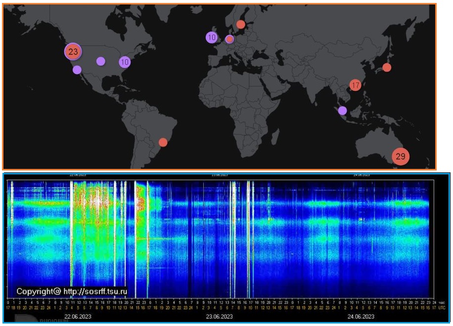 Note the signs that this Military activity in 27 US states is related to the regions we predicted would experience either tsunami or devastation. The Bridge between the Ozark and Appalachian Mountains lies where the New Madrid Fault Line crosses the Ohio River at Southern Indiana and Kentucky. This is where an Army exercise occurred days ago on June 14. Where the direction of movement for Military equipment can be ascertained, it is moving to the East Coast and West Coast, where tsunami could be expected.I am wondering if the Zeta’s have any information with regards to the abnormal Schumann Resonance . The usual website I visit to view the Schumann Resonance does not seem to be working. [and from another] Hi , very weird Schumann Resonance readings today 6 18 2023 , I never see this before . The vibration is over 190 Hertz from the regular 7.83. I was wandering what is happening,what change between Earth and Nibiru interaction, is a new stage? [and from another] https://www.godlikeproductions.com/forum1/message5458851/pg1 [and from another] https://www.disclosurenews.it/schumann-resonance-today-update/ [and from another] https://www.youtube.com/watch?v=ie5UrMZTBy0 DOUBLE WHAMMY Geomagnetic Storm & Electromagnetic BURSTS with Gemini New Moon on June 18th