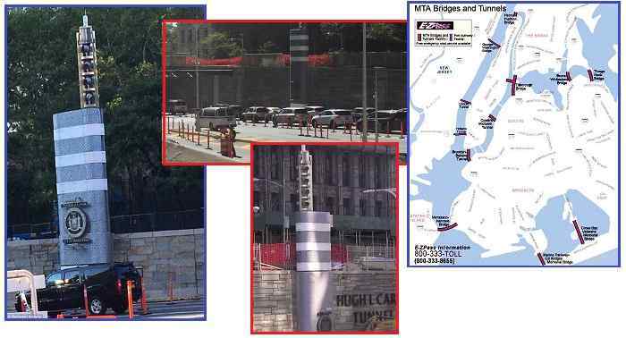 If one wants to keep surveillance a secret, one should not conduct the surveillance from a 30 foot tall tower covered in cameras and detection devices. The MTA is being secretive because the federal department of Homeland Security asked them to say as little as possible about the new installations. Of course it’s not merely decorative. Of course it’s not just to read the pass cards at the toll stations. Anti-terrorism requires detecting nuclear material and ticking bombs, via all manner of detection devices. No need to lie about it, the terrorists are well aware of the purpose of these towers.