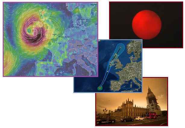 Could the Zetas say something about this, as I think it's more then just sand from the Sahara? [and from another] http://www.telegraph.co.uk/news/2017/10/16/strange-red-sun-phenomenon-seen-across-england-caused-hurricane/ Did you wake up to a ghostly red sun today? Many people in England reported the phenomenon on Monday morning - and it appears to have been caused by Hurricane Ophelia. [and from another] https://t.co/ZxDuvjQlUH What’s with the #red #sun in #Somerset this morning? Influence of #hurricane #Ophelia? Jacqueline Breslin (@re_envision101) 16 oktober 2017 [and from another] https://www.thesun.co.uk/news/4695254/hurricane-ophelia-red-sun-yellow-sky-weather-uk-ireland-latest/ The gales pulled Saharan dust north to the UK to create a blanket of orange cloud, with the deadly storms also bringing powerful 80mph winds - killing three people. The layer of thick dust brought an eerie glow across the sky and turned the sun red as Hurricane Ophelia killer winds picked up dust and debris southern Europe and Africa.