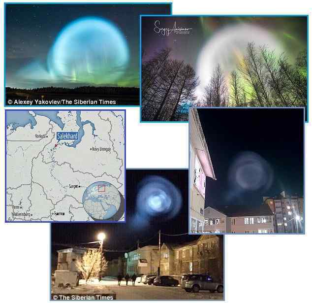 Northern lights? Ah the video is showing spirals. [and from another] http://www.dailymail.co.uk/sciencetech/article-5023505/Huge-glowing-ball-northern-Siberia-sparks-UFO-fears.html October 27, 2017. Russia has been hit by a wave of reports of a giant UFO in the sky last night with spectacular pictures of an enormous glowing ball illuminating northern Siberia. While the source of the light remains unclear, some have suggested that it was the trace of a rocket launched by the Russian military that caused this extraordinary phenomenon in the night sky. Missile tests were underway from submarines and aircraft last night, and the exercises included the launch of a super-powerful Topol rocket from Plesetsk cosmodrome, 550 miles north of Moscow.