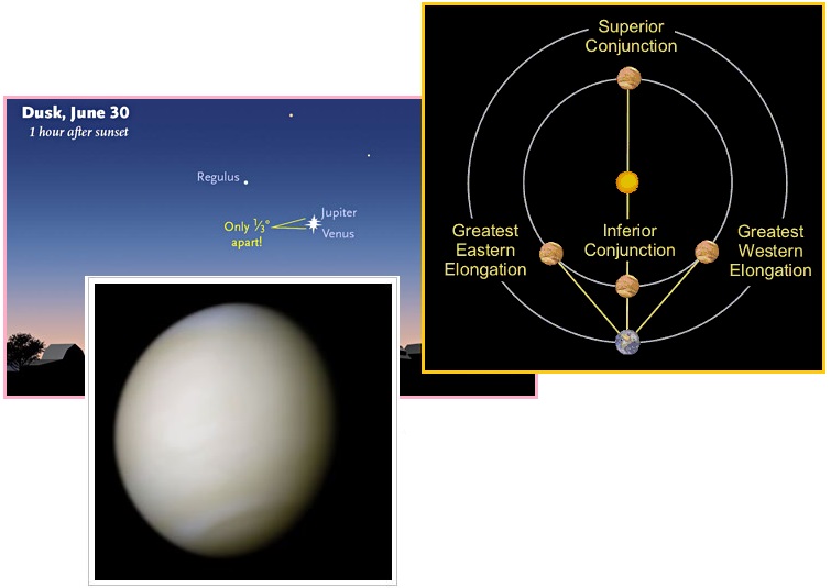 Не имитация ли это сейчас в действии? И как объяснить Элонгацию Венеры? [и от другого] http://www.skyandtelescope.com/astronomy-news/observing-news/venus-and-jupiter-a-dazzling-duo-062520154/ Венера и Юпитер: Наконец-то Вместе. Две самых ярких планеты плавно приближаются друг к другу в ранневечернем небе, и их астрономический танец достигает кульминации при ультраблизком схождении 30-го июня. [и от другого] http://astro.unl.edu/naap/ssm/modeling2.html В гелиоцентрической модели Коперника планеты движутся по круговым орбитам вокруг солнца. Можно задаться вопросом, каким образом Коперник определил порядок планет и размер их орбит – в конце концов у него не было никакого подспорья в виде изображений с космического аппарата, ни даже телескопа. Он определил эти вещи, измеряя элонгацию. Элонгация – это угол между солнцем и планетой, видимый наблюдателю на земле. [и от другого] https://in-the-sky.org/news.php?id=20150606_12_100 Считается, что Венера находится в самой большой элонгации, когда она проходит одну из двух точек на своей орбите, в которых она видится дальше всего от Солнца.