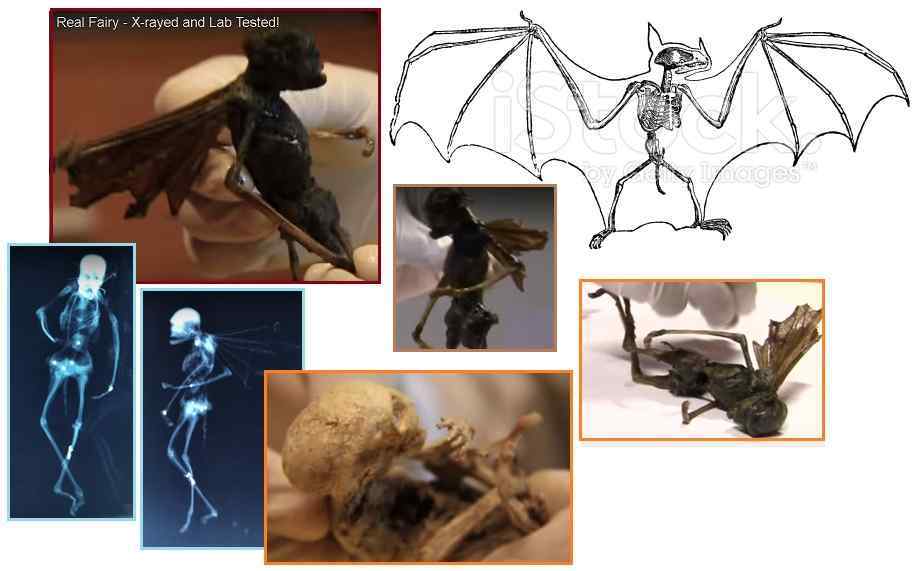 Это мумифицированное тело летучей мыши. Кожа крыльев была отделена от тонких рук чтобы придать мыши вид крошечного гуманоида. Кожа крыльев естественным образом прикреплена к плечам и спине, так что в процессе сушки кожа сжимается и кости пальцев в крыльях придвинулись ближе к спине. Уши летучей мыши заостренные и большие. Ноги воображаемого сказочного существа - именно такие, как можно ожидать у летучей мыши. Примечательно, врачи говорят, что второй, проверенный образец ДНК не может быть получен из-за использования формальдегида. Таким образом, нам придется прервать мошенников, ищущих славы и богатства.