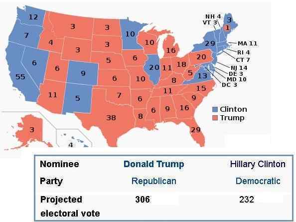 Дональд Трамп выиграл президентские выборы 2016 года. Не вдаваясь в детали того, что все еще происходит за кулисами, могли бы Зеты предложить свои замечания относительно проведения и результатов выборов? [и от другого] Трамп Берет Верх над Клинтон в Потрясающе Неожиданном Поражении Белого Дома. 9 ноября http://news.trust.org/item/20161109074431-l35ms Трамп в 70 лет будет самым старым президентом США на первом сроке. Телесети спрогнозировали, что республиканцы сохранят контроль над Палатой представителей США, где дрались за все 435 тепленьких местечек. В Сенате США партия также вложилась в неожиданно жесткую борьбу, чтобы защитить свое большинство в Сенате США. Победа Трампа отмечает разочаровывающий конец президентских устремлений Клинтон, 69 лет, которая не смогла во второй раз стать избранной первой женщиной-президентом США. [и от другого] Трамп Торжествует. 9 октября 2016 http://www.nytimes.com/ Исход, презревший последние опросы, показавшие скромное преимущество Хиллари Клинтон, угрожает общественными и политическими волнениями по всему миру.