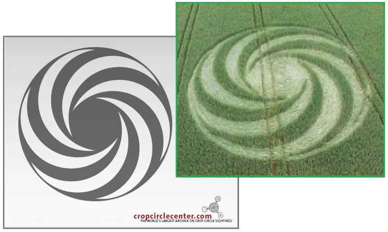 Таким образом, если смотреть со стороны, танец представляется как нить ДНК. Другой способ изобразить этот магнитный танец - это представить себе суточное вращение Нибиру спереди, с точки зрения на Земле при приближении Нибиру. Это вихрь, водоворот. Он непрерывен, так же как и вращение планеты. Он ретроградный, по часовой стрелке, каковыми являются вращение и орбита Нибиру. И так как Нибиру приближается, то Земля будет втягиваться во все более интенсивное колебание, поскольку она не может избежать магнитного захвата. Этот рисунок кругов в Германии призван изобразить власть Нибиру над Землёй, в графической манере, хорошо понимаемой человечеством.
