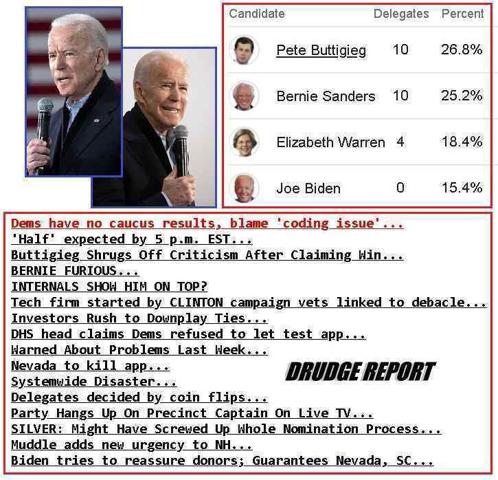 Могли бы Зеты сказать, что происходит в Айове? Это полный провал для демократов. Трудно представить, что Трамп не победит на выборах. Единственная угроза для него - масштабный финансовый кризис, который вот-вот произойдет. [и от другого] https://www.foxnews.com/politics/app-used-in-iowa-democratic-caucus-fiasco-linked-to-former-clinton-campaign Шедоу (Shadow), техническая фирма, описывающая себя как группу, создающую "постоянное преимущество для прогрессивных кампаний и целей с помощью технологий", это компания, создавшая приложение Демократической партии Айовы. По крайней мере, главный операционный директор, главный исполнительный директор, главный технический директор и старший менеджер по продуктам Shadow - все они работали на президентскую кампанию Хиллари Клинтон. [и от другого] https://www.latimes.com/business/technology/story/2020-02-04/clinton-campaign-vets-behind-2020-iowa-caucus-app-snafu Приложение, созданное технической фирмой, управляемой ветеранами президентской кампании Хиллари Клинтон в 2016 году, подвергается критике из-за беспрецедентной задержки с сообщением результатов Демократических кокусов в Айове. Председатель Демократической партии штата Трой Прайс обвинил в проблеме ошибку кода. Фирмой, стоящей за этим приложением, как сообщается, является Shadow, аффилированную с АКРОНИМ (ACRONYM), демократической некоммерческой организацией, основанной в 2017 году. В дополнение к техническим системам, используемым для сведения результатов в таблицы, мы также используем фотографии результатов и документальные свидетельства, чтобы подтвердить совпадение результатов. [и от другого] https://www.washingtonexaminer.com/news/dhs-head-claims-iowa-democrats-refused-to-let-department-test-failed-caucus-app Исполняющий обязанности министра национальной безопасности Чад Вульф заявил, что демократы штата Айова отказались от предложения Агентства кибербезопасности и безопасности инфраструктуры министерства протестировать приложение для обеспечения его безопасности. [и от другого] https://theintercept.com/2020/02/04/sanders-campaign-release-caucus-numbers-iowa-buttigieg/ Штаб кампании Сандерса сообщил, что он получил 29,7 процента голосов, а следом за ним бывший мэр Саут-Бенда Пит Баттигиг (24,6 процента). Сенатор Элизабет Уоррен набрала 21,2 процента, а бывший вице-президент Джо Байден - 12,4 процента. [и от другого] https://www.politico.com/news/2020/02/01/des-moines-register-poll-not-released-after-apparent-mishap-110284