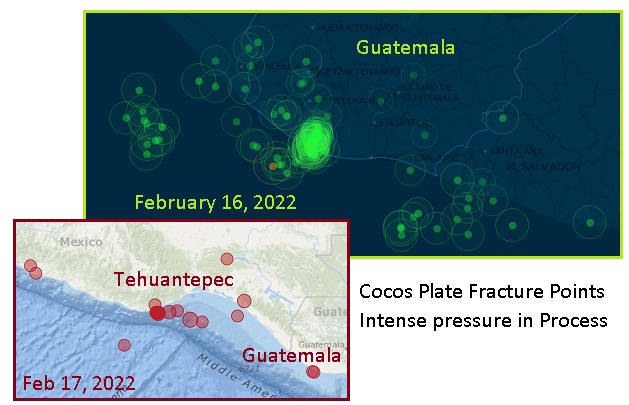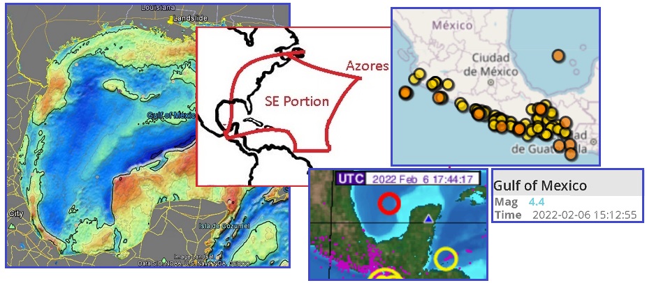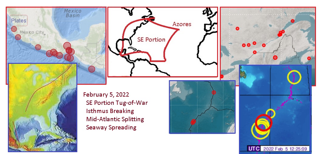 Материковая и Юго-Западная части североамериканского континента разделились у оконечности Мексики через Мексиканский залив. Это видно по записям буёв, которые показывают, что в Юго-Западной части континента дно залива вздымается, в то время как буй у западного побережья Мексики показывает нормальную высоту волн на всем протяжении. Ранее они поднимались и опускались вместе. Экстремальная активность землетрясений за последние несколько дней от хребта Техуантепек и вниз вдоль побережья до Гватемалы, в сочетании с очень глубоким землетрясением на самом перешейке, показывает, что в этом месте, вероятно, плита Кокос хрустнула.