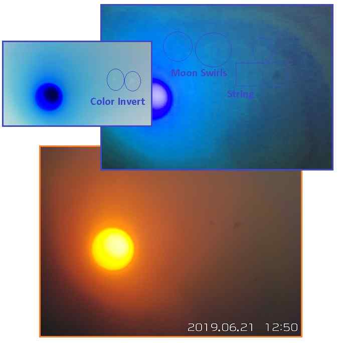 Как и во всех недавних Затмениях, можно найти некоторые свидетельства о комплексе Нибиру, в первую очередь на частных фотографиях, на которых не пытаются его замаскировать, но истеблишмент изо всех сил старается скрыть доказательства. НАСА и его соратники настолько агрессивно уменьшают блики Солнца, что даже звезды на заднем плане не могут просвечивать сквозь них. Они быстро отворачивают камеру, когда Нибиру или ее блестящие Лунные Вереницы вот-вот появятся в зарождающейся короне. Нибиру обычно можно найти в неровном свете вокруг Солнца, которое не совпадает с солнечными пятнами или выбросами из Солнца. Затмение 2019 года, видимое из Южной Америки, соответствует этому сценарию.