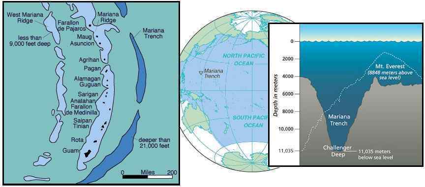 Голливудский режиссер Джеймс Кэмерон погрузился на глубину почти 11 км (семь миль) - в самое глубокое место мирового океана - в Марианскую впадину, расположенную на западе Тихого океана. [и от другого] http://www.physorg.com/news/2012-03-seismic-survey-mariana-trench-earth.html Впадина находится в зоне субдукции, где древняя, застывшая и плотная Тихоокеанская плита проскальзывает под более молодую, более легкую, расположенную сверху Марианскую плиту. В толще воды на глубине четыре мили, где дно еще находится так далеко внизу, что сейсмометры могут взорваться, когда будут погружены туда, могут быть использованы привязанные гидрофоны. В Марианскую впадину входит углубление в форме ванны, называемое Challenger Deep (Бездна Челленджера), в которую планирует погрузиться в специально построенном одноместном батискафе с названием «Deep Challenger» режиссер «Аватара» Джеймс Кэмерон. Впадина была образована при субдукции некоторой части старейшей в мире океанической коры, которая погружается под Марианскую плиту местами так круто, что уходит почти прямо вниз. [и от другого] В начале февраля, во время работы над проектом Кэмерона по погружению в Марианскую впадину погибли два давних близких сотрудника Кэмерона, когда их вертолет воспламенился вскоре после взлета. Был ли это просто несчастный случай, или это некое сообщение, посланное авторитетному человеку Кэмерону с огромным общественным влиянием, который недавно приобрел недвижимость в Новой Зеландии и в настоящее время собирается взглянуть для удовлетворения собственного интереса на дно океана? Не высказывался ли он своевольно против сокрытия, не получал ли каких-то угроз? [и от другого] http://newswatch.nationalgeographic.com/2012/02/05/celebrated-filmmakers-killed-in-australian-helicopter-crash/ [5 февраля 2012 г.] В субботу в результате крушения вертолета в Австралии погибли два всемирно известных режиссера. Биолог и эколог Майкл Де Грей и пилот, исследователь подводных пещер, работавший над документальным фильмом с Джеймсом Кэмероном и каналом «National Geographic» режиссер Эндрю Уайт. Вертолет с Эндрю Уайтом и Майклом Де Греем разбился вскоре после взлета. Уайт был владельцем и пилотом вертолета Robinson R-44. Оба мужчины были всемирно известными документалистами, специалистами в области исследования и охраны океанов.