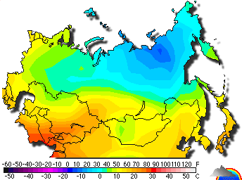 По сравнению с предыдущими месяцами, раскачивание Земли замедлилось, поэтому тепло и холод распределяются более близким к привычному образом - холодная середина континента и тепло по береговым линиям.