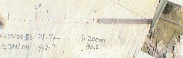 - Согласно вычислениям моей программы, высота Солнца в Осаке, Япония, была 72 градуса, что на 5 градусов севернее. Я сделал снимок отметки солнца 8 мая в 12:03 дня.