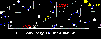- В 6:18 утра 16 мая азимут был 63°, а высота - 32°. По программе Skymap ожидались азимут 70° и высота 7°.