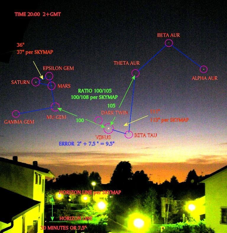 - Вечером 20 мая я сделал несколько снимков неба. Мои снимки - не подделка. Я им верю. Я обнаружил ошибку в 7.5" по Всему Небу, а Венера вообще видна более чем на 9.5" выше.