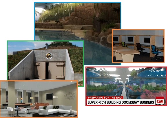 2017 г. стал годом, когда общественность узнала о том, что богатые строят роскошные бункеры для собственного спасения. Начиная с января, CNN и журнал “Нью-Йоркер”, а также британская Daily Mail, российская RT и ABC завалили публику снимками элитного подземного жилья. Туда также входили плавучие города на Таити. Послание бедным было очевидно – это не для вас, поскольку вы не можете себе этого позволить. И наоборот, бедным постоянно говорили, что они либо будут жить в крошечных домах, либо должны надеяться на разведение огорода на своем заднем дворе или на улицах в трущобах Лос-Анджелеса.