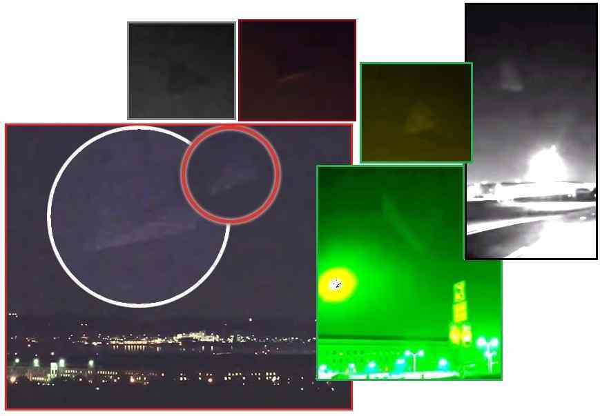 - На странном ролике видно, как нечто похожее на гигантский черный треугольник зависло над Министерством обороны США. Хотя кадры на видеозаписи темные, при изменении экспозиции можно увидеть очертания таинственного объекта, который устрашающе навис над Пентагоном. Темная сторона пирамиды темнее, чем фон неба – вы не можете проецировать тень, это говорит о том, что это реальный объект.
