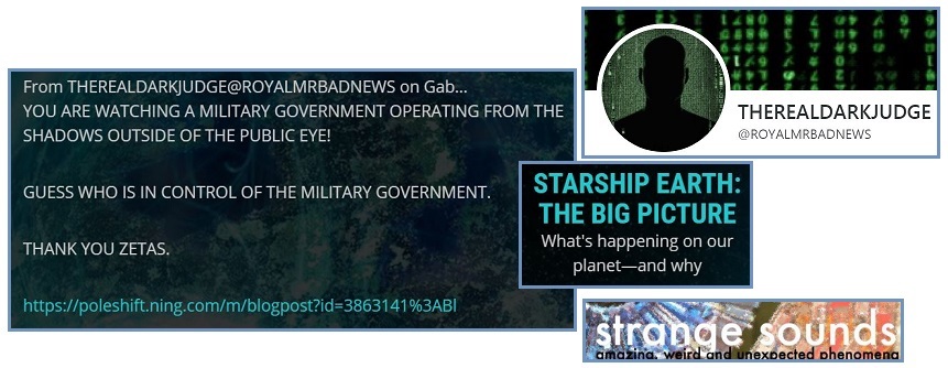 Ship Earth, а также инсайдер Темный Судья, который знает, что реально, а что нет. Поэтому, когда все они сослались на сообщение ZetaTalk, почти в один и тот же день, возник вопрос – могли ли это произвести впечатление видимость Нибиру и очевидные земные изменения, наблюдаемые в последнее время? Предсказания ZetaTalk продолжают сбываться. В статье на сайте Strange Sounds за 18 марта было процитировано описание сдвига полюсов с ZetaTalk. И блог Star Ship Earth за 16 марта упомянул последний информационный бюллетень ZetaTalk.