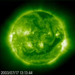 - I was just browsing through yesterday's EIT195 data, and I spotted a definite weirdness. Here are the EIT195 images from July 17 at 11:48:10 and 13:13:44 - the one is an exact 180 degree rotation of the other! I checked this in PhotoShop - they are an exact match. What's up with that?