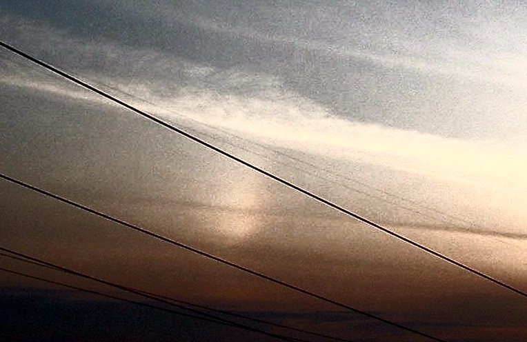 - Might be a sundog, however on the original images, and even better on the equalized images attached, you can see that there's a cloud in front of the object blocking the light from it. (Tiny cloud, like a line in front of it). I think sundog's usually don't relate to objects behind them, do they?