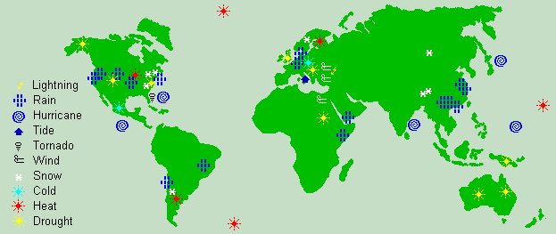 The Weather Watch extreme weather map at the end of 1997 looked like this:.