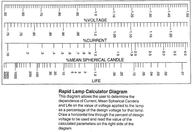 It is a good idea if you measure your planned primitive survival electrical system and how much it surges or changes in voltage. Estimate the change in voltages over and above 120 Volts, then drop this amount of voltage or more as a minimum for what is planned to be delivered to tungsten bulbs for a planned normal 2000 Hr lifetime. The following nomograph is usefully when calculating how much additional drop in voltage is needed to get the intended longer lifetime. Adding the amount of surge above 120 V for the generator system to the delta needed for the long lifetime and subtracting this from 120 volts gives the average voltage one should run your tungsten bulbs at to get longer lifetime.
